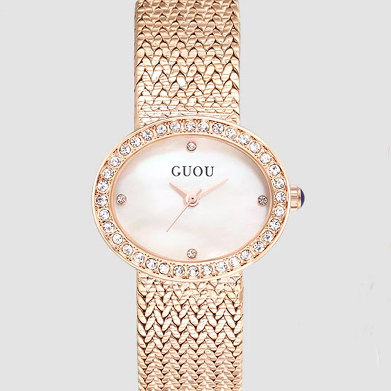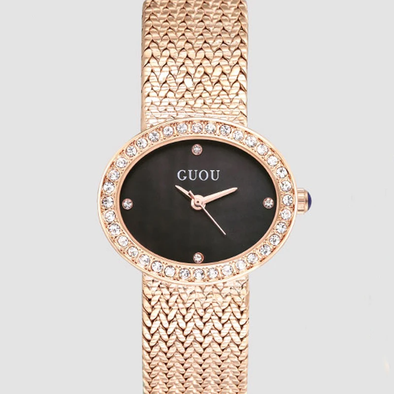 GUOU Top Luxury Brand Diamond Women Jewelry Watches Vintage Oval Watch Full Steel Bracelet Wrist Wa