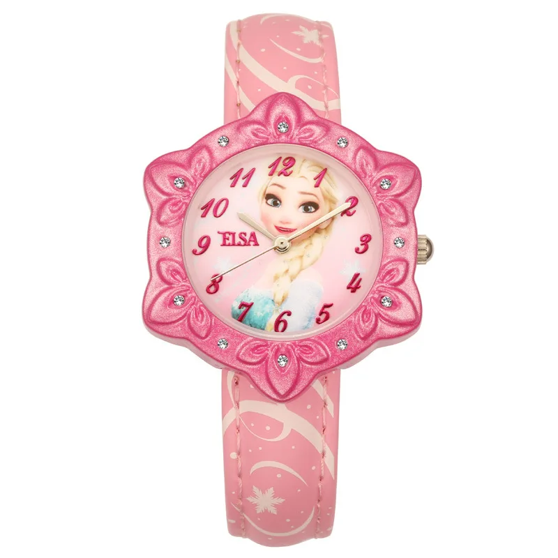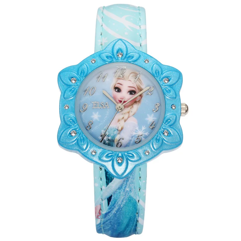 Disney Frozen Pricess Quartz Girl Wristwatch Princess Elsa 3Bar Waterproof Simple Fashion Round Lea