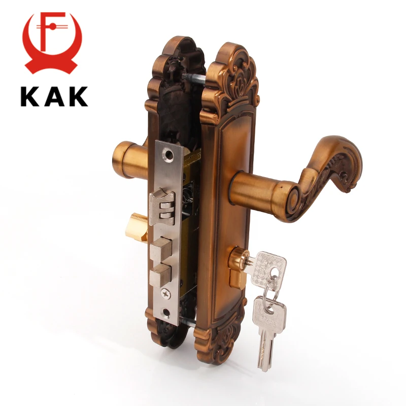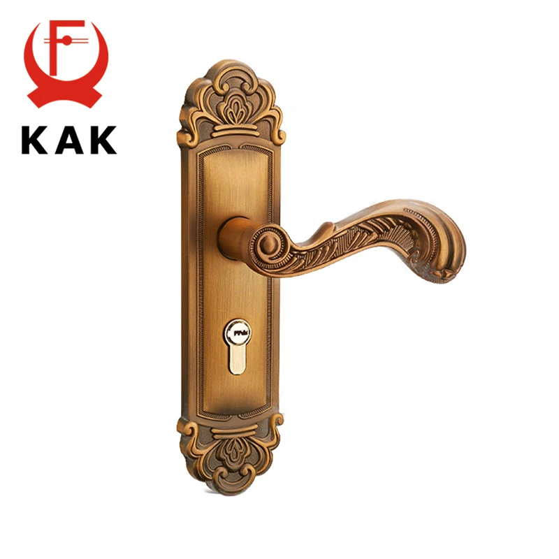 KAK Vintage Mute Room Door Lock Aluminum Alloy Interior Door Handle Lock European style Anti-theft
