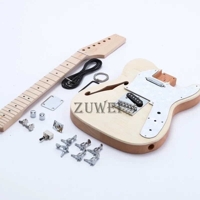 Electric Guitar Kits F Hole Flamed maple Top Maple Neck Mahogany Body Include Hardware
